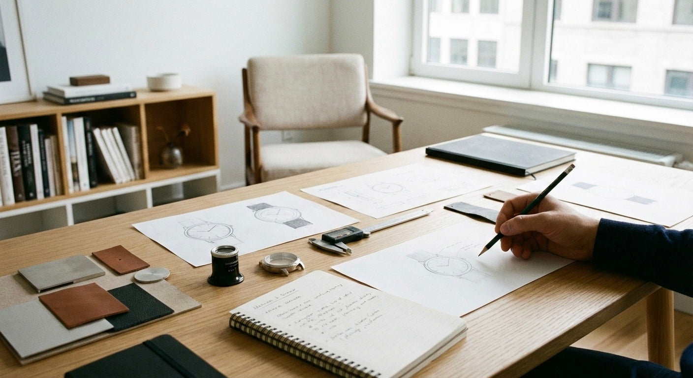 Dopo mesi di prototipi, definiamo il design essenziale: cassa minimalista, lancette precise, quadrante pulito. Ogni dettaglio è studiato per durare nel tempo.